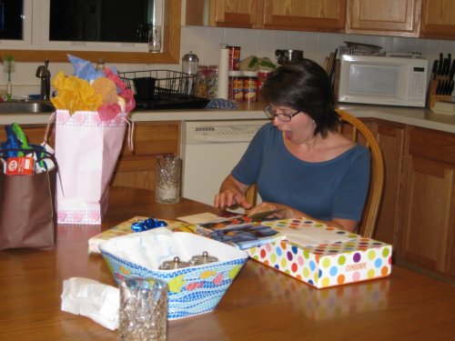 And…if YOU are the designated driver for your contingent, and you are so obsessed with your morning exercise that you absolutely have to take just a quick 10-mile bike ride before you go pick up your contingent, thus arriving at your destination 30 minutes later than expected, it’s only polite to help decorate the cake. (Note: it is NOT cool to still be decorating the cake when the receiver of the shower is arriving. Fortunately, we finished and managed to dispose of the evidence just in time.)